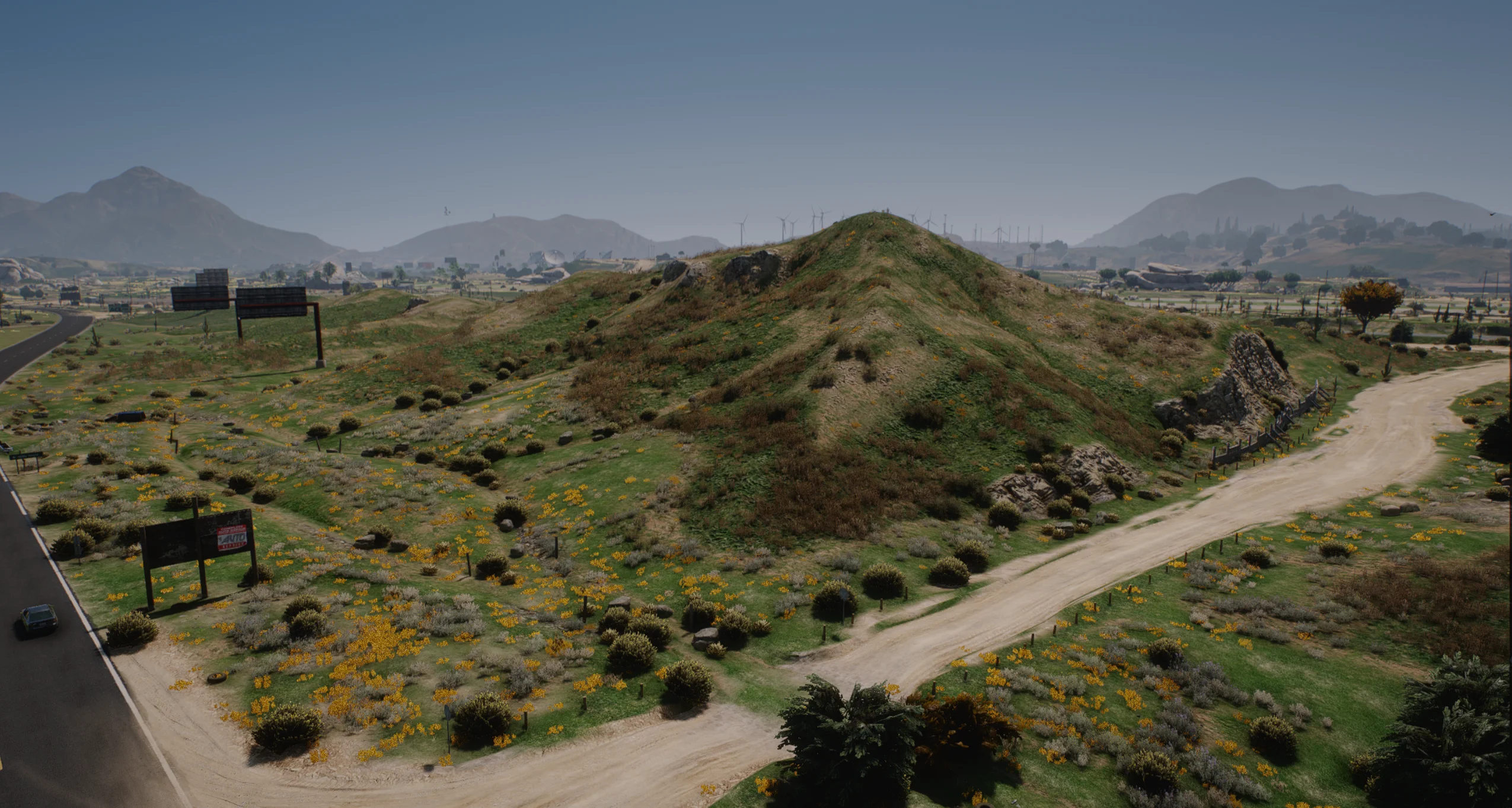 Sandy Shores Overhaul, replaces most of the sand parts of Sandy Shores with new vibrant grass, giving it a spring feel and new look for Sandy Shores.